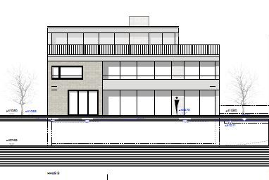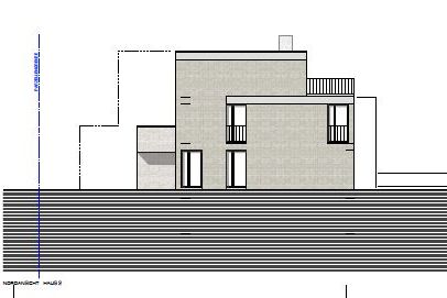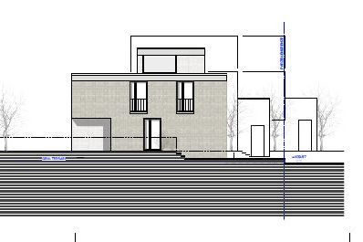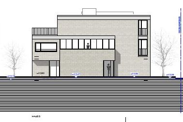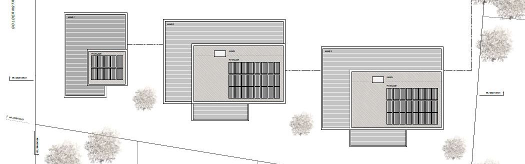 Überbauungsstudie für 5 Wohneinheiten mit Parkierung von Andreas Marti & Partner Architekten AG, Aarau. Arealfläche ca. 1'900 m² mit 3 Baukörpern, Bauvolumen 5'044 m³, BGF 1'598 m².